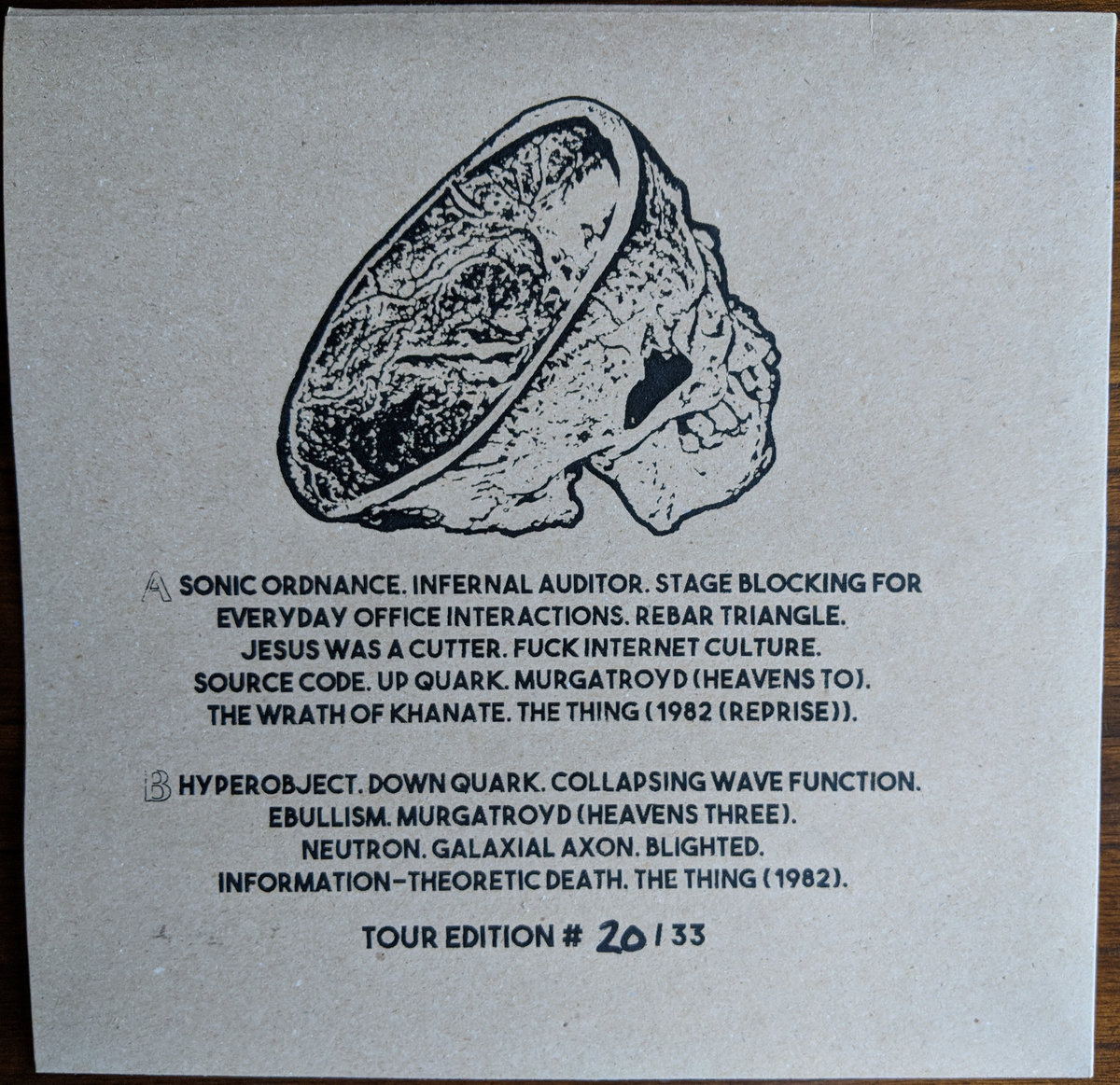 Tour Edition of "Turn On Tune In Drop Dead" with hand-numbered screen printed chipboard covers. Limited to 33 copies, 20 on Ghostbusters II Slime Pink and 13 on Black.